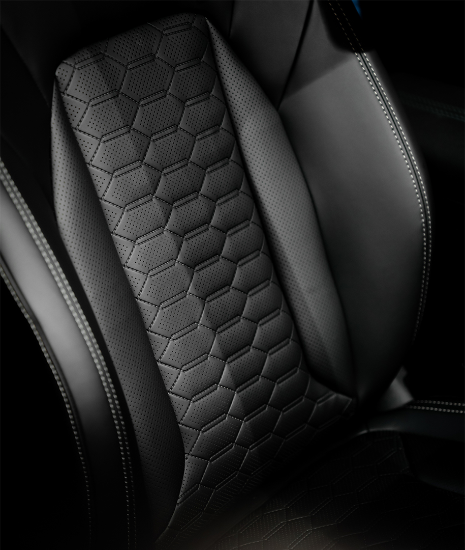 Unutrašnjost je oblikovana prema inspiraciji iz svijeta videoigara, s sportskim sjedalima koja imaju šavove u obliku šesterokuta, panoramskim staklenim krovom, te načinom rada performansi koji aktivira sintetički zvuk ubrzanja u sportskom načinu vožnje.
